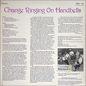 鐘塔の鐘を冠婚葬祭や礼拝といった目的に応じて美しく鳴らす為に、16世紀〜17世紀のイングランドで発達した演奏法『Change Ringing』。ひとりがひとつの調律された鐘を受け持ち、数学的規則に基づいて配列された音階の組み合わせに従って演奏するというもの。そのハンドベル版を収録した81年のレコード。幾何学的な線形で表されるそのスケールはミニマルミュージックにも似ていて、反復を基本とする進行の中に複雑な変化が織り込まれたサウンドはまるで響きの万華鏡。残響の幻影に埋め尽くされていくような天上的感覚に成仏確実。数あるChange Ringing録音の中でもぴかイチの内容。大推薦盤!